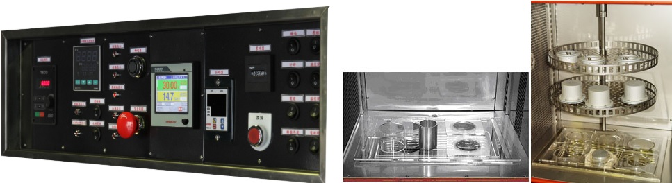 針對防水透濕性材料, 測試其透濕透氣性的環境設備, 可依其試驗標準, 設定溫度;濕度;風速;水溫…等條件,特殊的水平式循環方式, 搭配旋轉測試台設計, 以達到測試品的溫濕度及風量均勻度.當然一般恆溫恆濕的機器是無法到達此機的程度, 無法比擬. 可做JIS立杯法 ASTM倒杯法 B1法透濕度, 恆溫恆濕, 烘箱, 老化....等等。